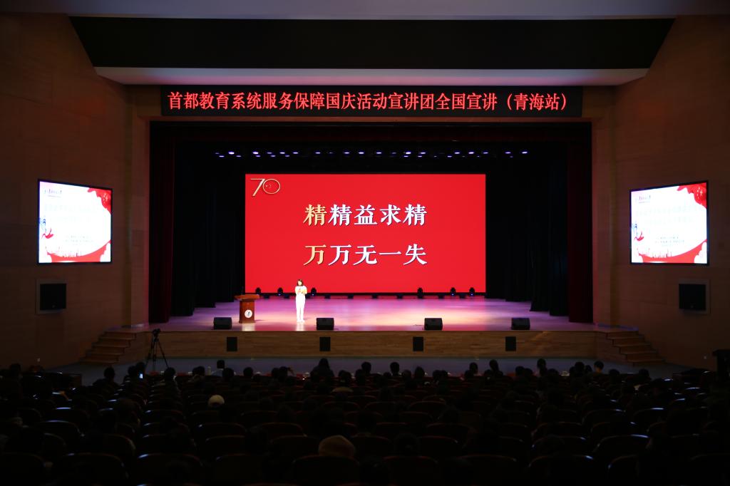 11月7日,首都教育系统服务保障国庆活动宣讲会(青海站)在必赢官网隆重举行。来自对外经济贸易大学和首都经济贸易大学的18位宣讲团的师生和西宁城市职业技术学院及565net必赢客户端的近1000名师生共同参加了宣讲会。宣讲会由校党委常委、副校长扎布主持。