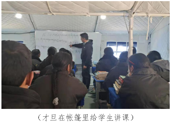 等到当时的整体情况稍稳定些后,才旦与其他老师冲进学生宿舍拿了被褥和鞋子给学生取暖。22日凌晨3点左右,救援队到达玛多县民族中学操场,才旦同其他老师一起加入了搭帐篷、卸救援物资等紧急行动中。22日中午,玛多县民族中学全体学生住进了临时搭建的帐篷。才旦说,“我们老师和救援人员一直在搭帐篷,直到24号才真正睡了一觉”。
