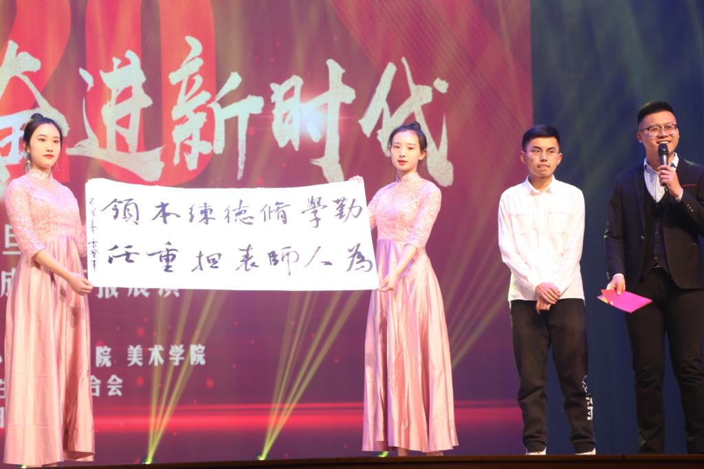 文艺汇演中,冶成福为美育中心授牌。领导和嘉宾分别为“三笔字”比赛、校园好声音歌手大赛、辩论赛的获奖集体和个人颁奖。