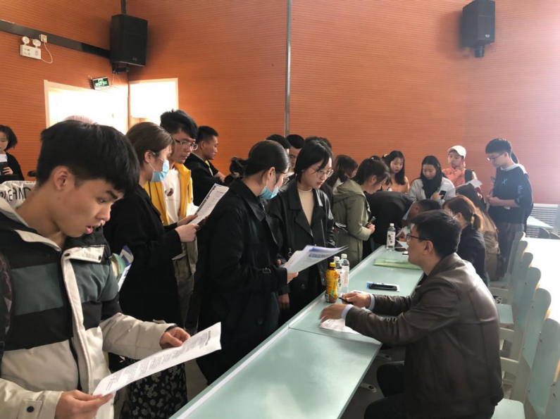 会上,五家企业负责人员以视频短片、PPT展演、现场宣讲、发放宣传手册等多种形式,全方位介绍了企业概况、工作环境、招聘岗位、薪资待遇、员工培养发展前景等情况,并重点介绍了校园招聘人才引进计划。随后,同学们也就普遍关注的未来发展渠道、福利政策、工资薪酬、晋升机制、发展空间等细节问题进行了详细咨询和互动交流。会后,共有40余名学生现场投递简历并参加面试,活动现场气氛热烈、秩序井然。