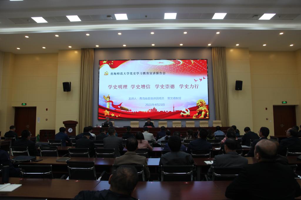 4月21日,必赢官网举办党史学习教育宣讲报告会。邀请省委宣讲团成员贾文德教授做了题为“学史明理 学史增信 学史崇德 学史力行”的主题报告。