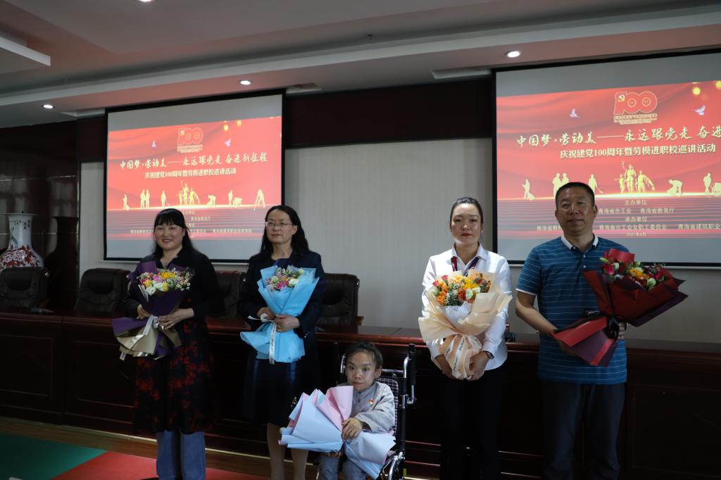 为庆祝中国共产党成立100周年,扎实推进党史学习教育活动的深入开展,弘扬劳模精神、劳动精神、工匠精神,6月7日-15日,青海省总工会、青海省教育厅、青海省科教文卫工会联合在青海卫生职业技术学院、青海交通职业技术学院、青海建筑职业技术学院、青海工业职业技术学院、湟中区职业教育中心开展“中国梦·劳动美——永远跟党走·奋进新征程”庆祝建党100周年暨劳模进职校巡讲活动。