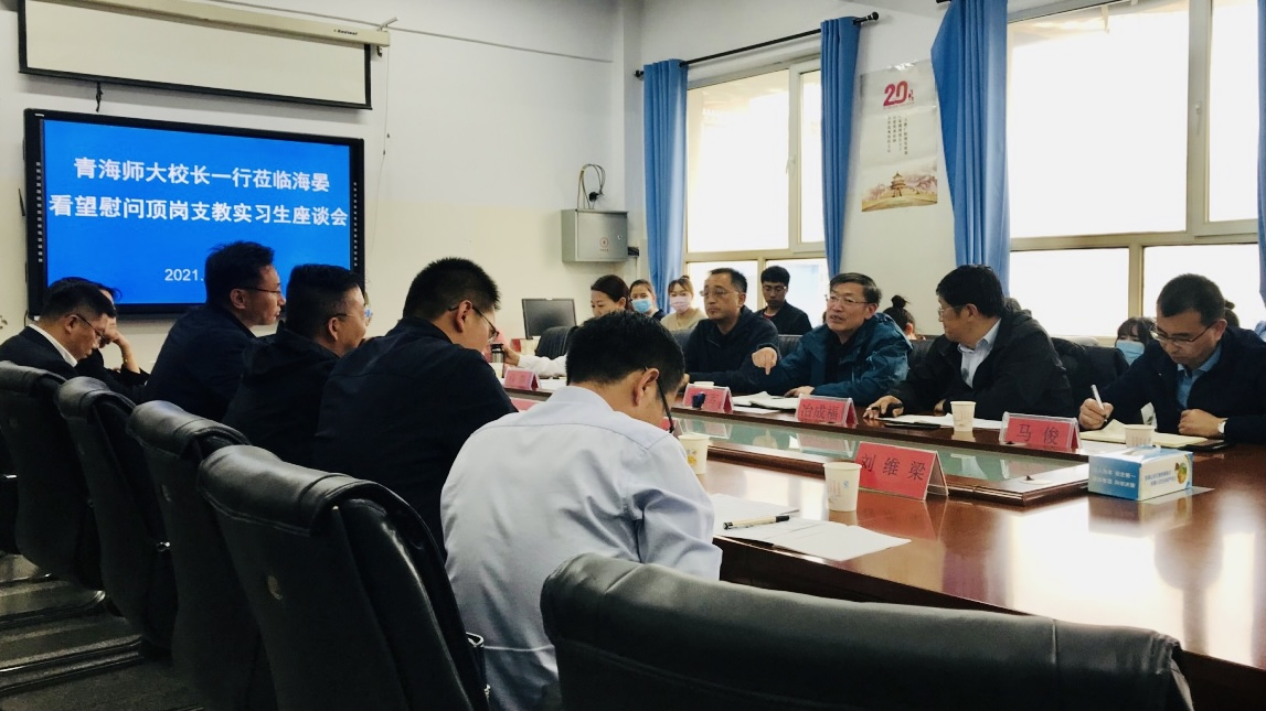 6月24日,校长史培军、副校长冶成福,教务处、宣传部、校国际合作与交流处负责人等一行到海晏县看望顶岗支教师生,并在海晏县寄宿制民族小学的会议室召开了座谈会。海北藏族自治州副州长殷茂文、海晏县县委书记桑本、海北州教育局负责人、海晏县教育局负责人、各学校负责人、支教师生参加,座谈会由海北州副州长殷茂文主持。