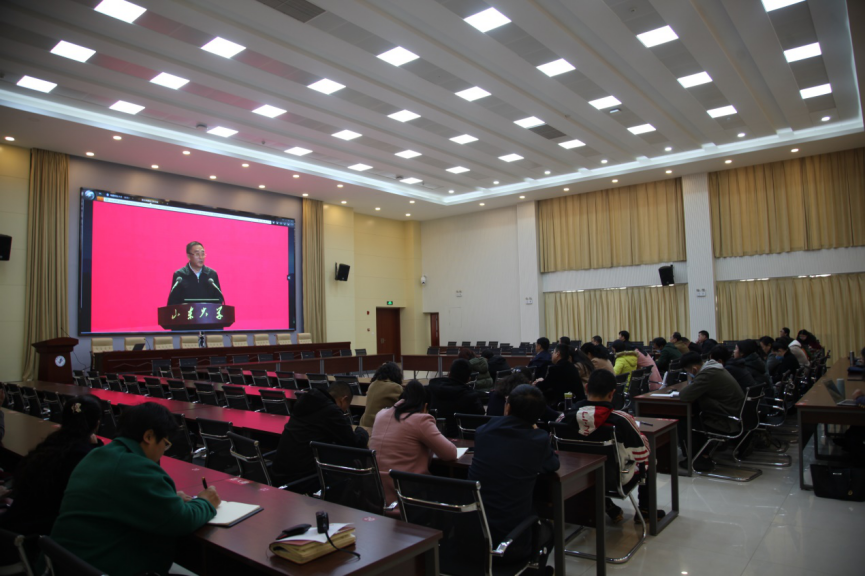 11月3 日上午,由教育部高等教育司指导、教育部新文科建设工作组主办的新文科建设工作会议在山东大学召开。会议研究了新时代中国高等文科教育创新发展举措,发布了《新文科建设宣言》,对新文科建设作出了全面部署。必赢官网在办公楼一楼学术报告厅设立分会场,收看视频会,党委书记毛学荣,副校长冶成福,教务处、社会科学处、研究生院、各文科学院主要负责人,教师代表共70余人参加会议。