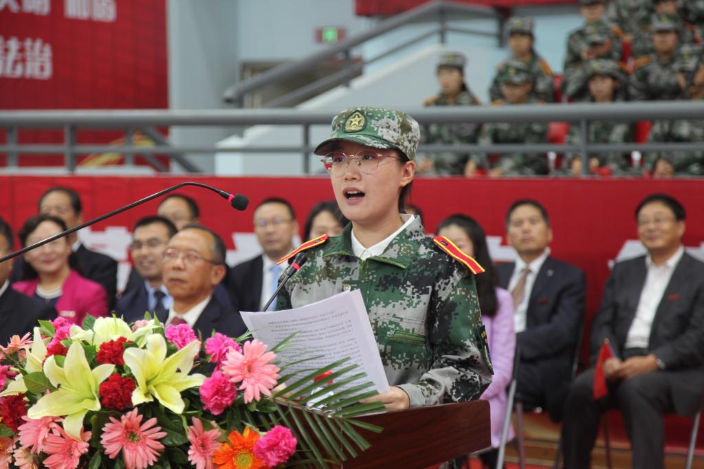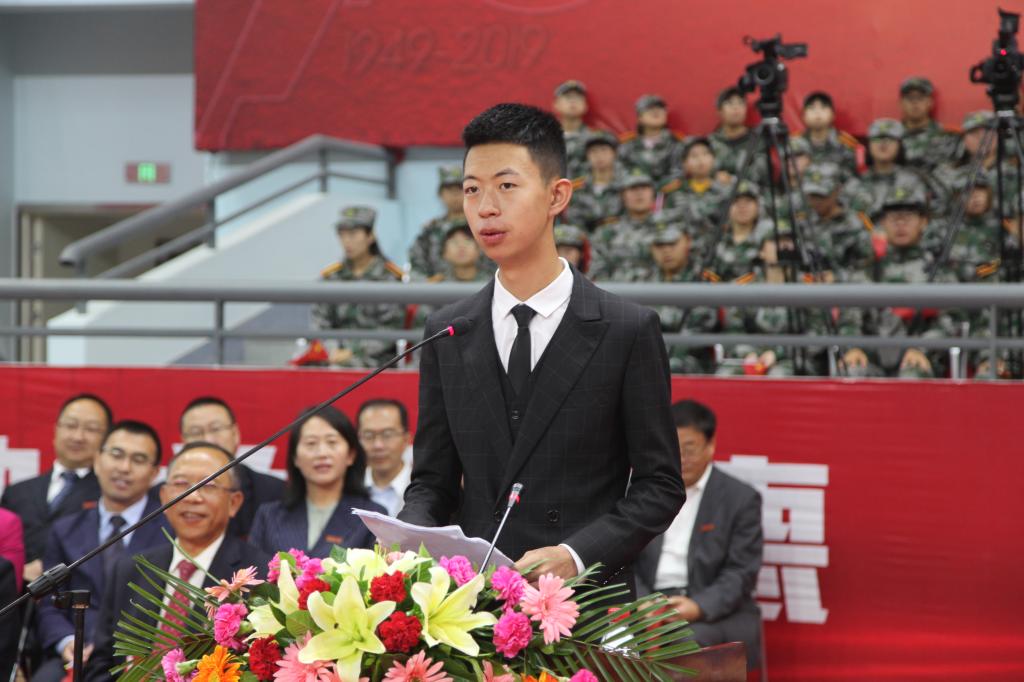 军训教官代表谭震,2019级化学化工学院学生陶昱宏先后作了表态发言。谭震表示将严格要求、科学施教,帮助新生学有所获,确实达到明纪律、知军事、练体魄、保安全的目的,圆满完成军训任务。陶昱宏代表全体新生宣誓,军训期间将遵守纪律,勤于训练,按要求完成军训。