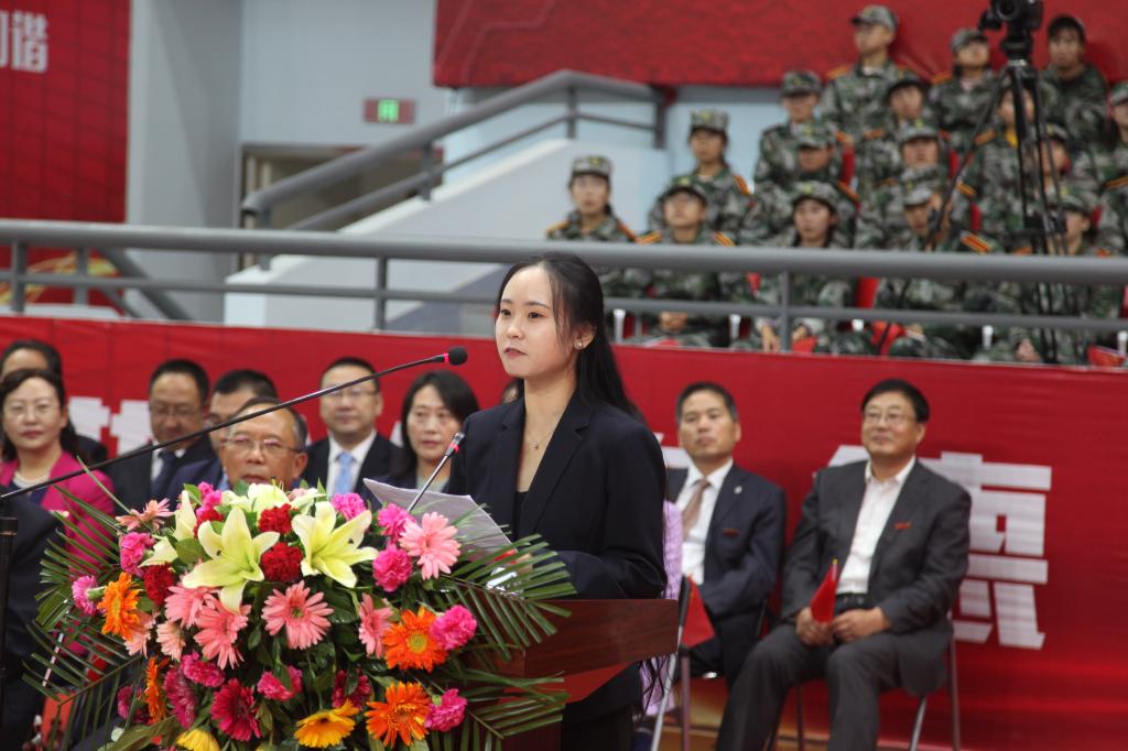 外国语学院刘海云教授作为教师代表在发言中深情寄语新生,在大学期间要积极思考,培养创新思维,博学厚德;要学会选择、学会包容、学会管理时间。