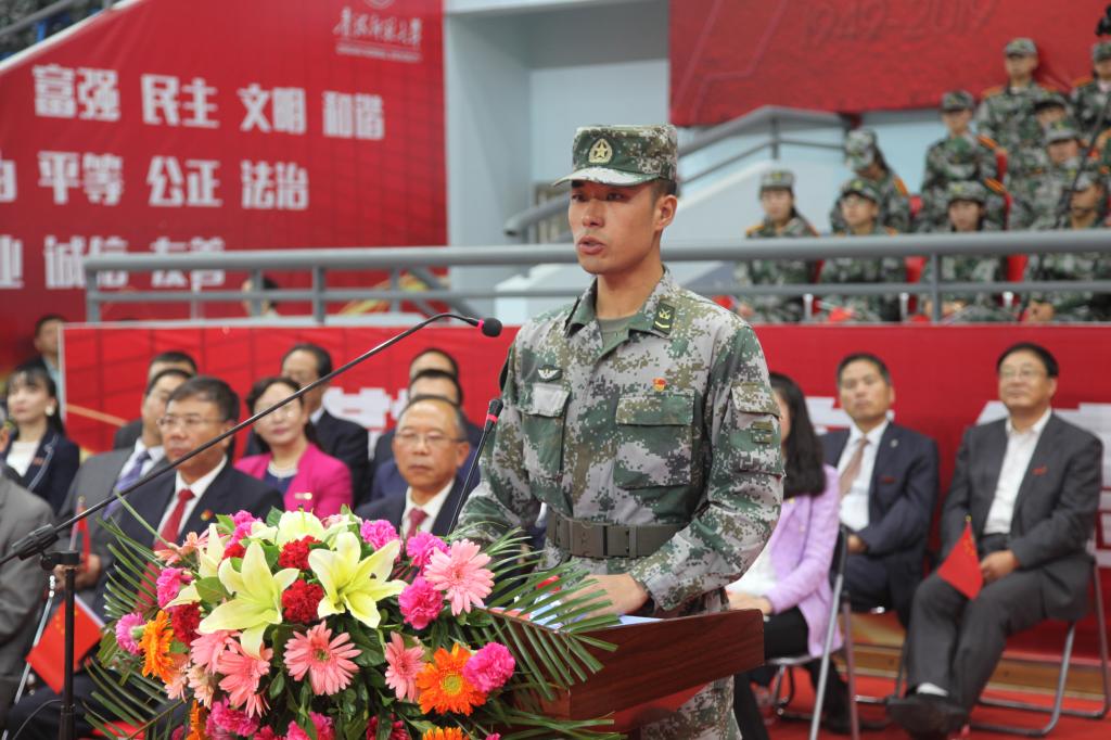 军训教官代表谭震作了表态发言