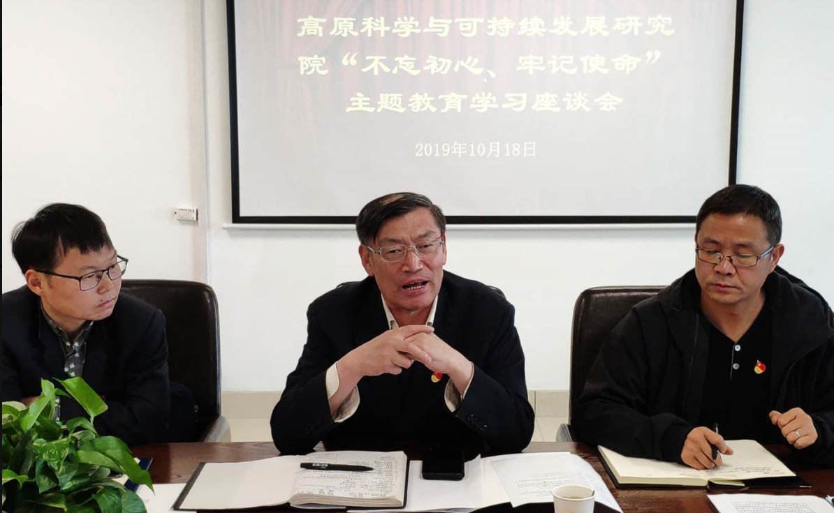 10月18日下午,青海省人民政府-北京师范大学高原科学与可持续发展研究院(以下简称“高科院”)召开“不忘初心,牢记使命”主题教育学习座谈会,校长史培军出席并主持会议,高科院相关负责人、专家团队负责人及团队成员代表共20多人参加会议。