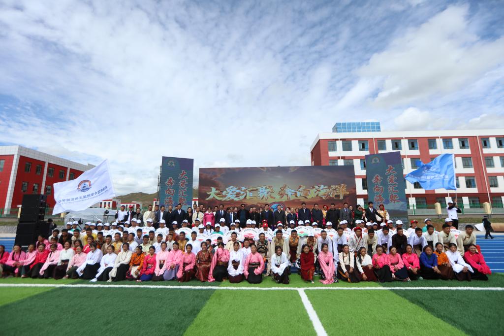 最后,昂格宣布学校正式落成,何勃、毛学荣、李有增、昂格、毛育生、冶成福、吉洛、欧格共同为“565net必赢客户端附属玉树实验学校”校名揭牌,并一同观看附属玉树实验学校《大爱汇聚、奔向海洋》大型主题文艺演出。