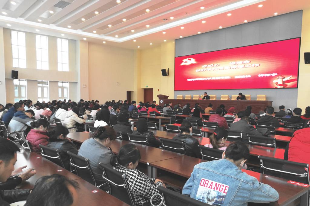 许存宁紧紧围绕贯彻落实“不忘初心、牢记使命”主题教育这一主线,从深刻理解精神实质和重大意义、什么是共产党人的初心和使命、为什么要“不忘初心、牢记使命”和如何践行初心和使命四个方面,结合个人学习体会和后勤管理、服务、保障工作的实际,深入浅出地对此次主题教育提出的新思想、新要求、新任务作了全面系统而又重点突出的解读。授课中,许存宁带领与会人员共同回顾了近年来必赢官网的搬迁、运行、后勤的发展成绩,从教育教学服务、保障、管理等方面总结了学校学用习近平新时代中国特色社会主义思想步步深入取得的实际成效,对在学院师生中调研到的实际问题,在会上给予了回应。