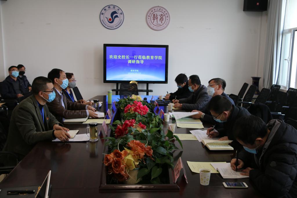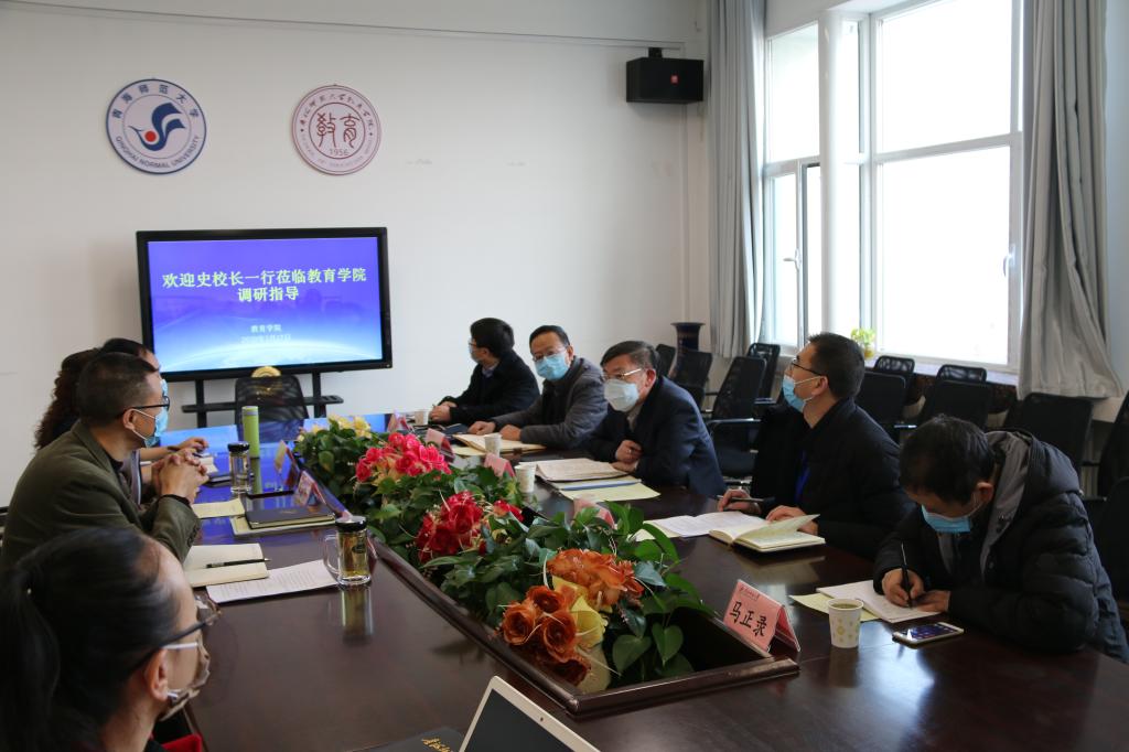 3月17日上午,校长史培军赴教育学院调研指导工作,校办公室、教务处、发展规划处、研究生院等职能部门主要负责人陪同调研,教育学院各科室负责人及行政人员参会。