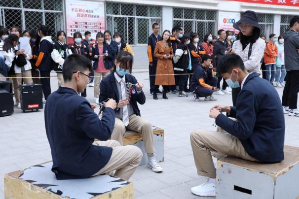 在附属实验中学高一年级学生“九连环”比赛中,平台正式启动。比赛以“弘扬传统文化,感受数学魅力”为主题,让学生在解“九连环”的过程中,感悟数学文化,学会用数学的眼光观察世界,用数学的语言表达世界,用数学的思维思考世界。