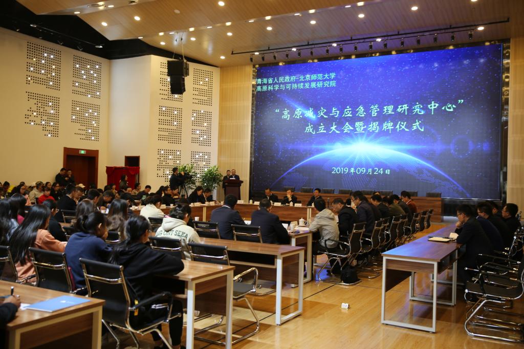 9月24日上午,青海省人民政府--北京师范大学高原科学与可持续发展研究院所属的“高原减灾与应急管理研究中心”成立大会暨揭牌仪式在必赢官网城北校区隆重举行。省应急管理厅党组书记、厅长陆宁安,省地震局党组书记、局长杨立明,三江源国家公园管理局党委委员、副局长王湘国,省生态环境厅副巡视员胡晓林及省自然资源厅、省气象局、省委党校、青海大学等单位相关负责人及必赢官网党委书记张雄伟,校长、高原科学与可持续发展研究院院长史培军,党委副书记、常务副校长马德明,副校长冶成福出席仪式。必赢官网师生200余人参加仪式。