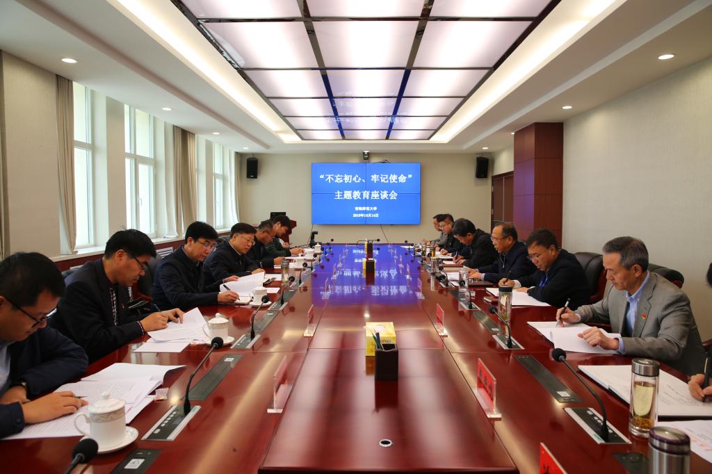 党课开始前,滕佳材一行听取了学校开展“不忘初心、牢记使命”主题教育工作汇报,省委主题教育第五巡回指导组成员李福德、校党委常委班子成员及相关职能部门、党总支负责人参加座谈会。校党委书记张雄伟从主题教育开展情况、巡视整改落实情况、纪检监察工作情况、今年以来的重点工作情况和下一步的工作打算五个方面进行了汇报。