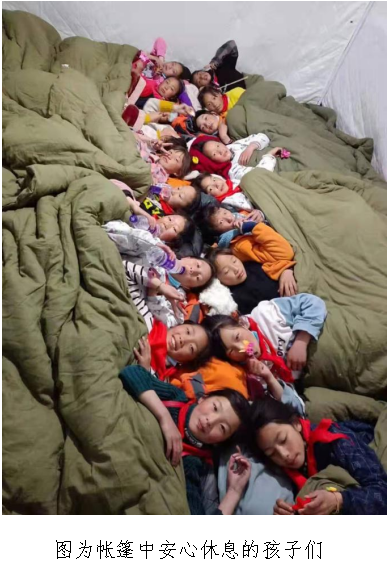 帐篷内的温度并不高,孩子们挨在一起取暖,贡求吉时刻陪伴在他们身边。灾后的基础设施恢复需要时间,很多同学到现在依旧穿的比较单薄,洗漱也是一大难题.在这样艰苦的环境下,贡求吉并没有叫苦叫累,而是实实在在的践行了565net必赢客户端的校训——“勤学修德,为人师表”,与学生们同吃同住,任何的问题都积极帮助孩子们去解决,正如她所表达的那样:“我认为我需要肩负起我要承担的责任和义务,他们需要我,我一定会做好,来到这里我不后悔。”