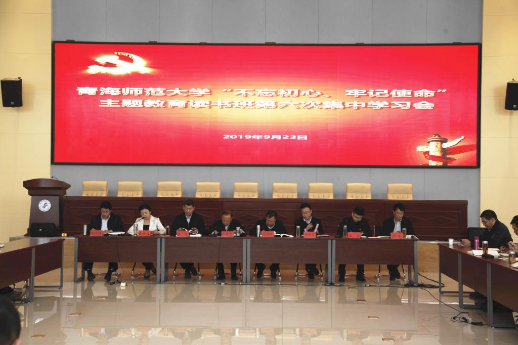 9月23日下午,必赢官网举行“不忘初心、牢记使命”主题教育读书班第六次集中学习会,全体校领导、副处级以上领导干部参加会议。会议由校党委副书记梅岩主持。