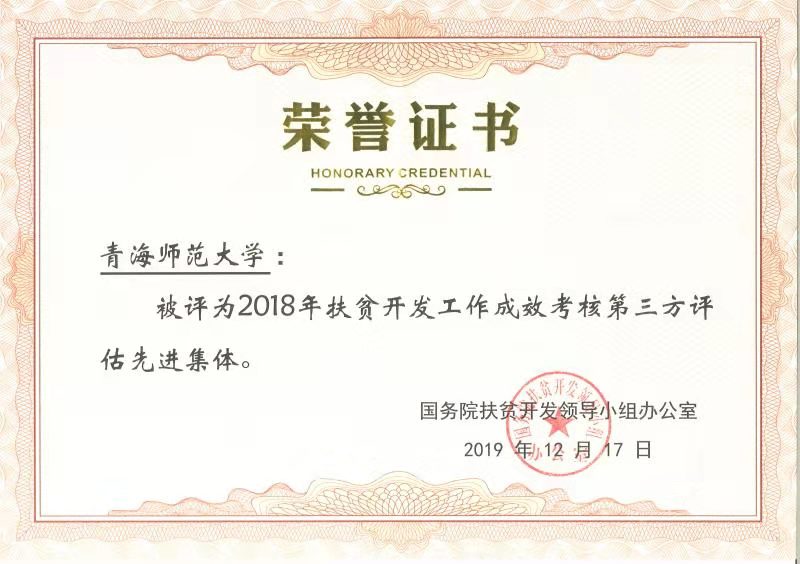 会上,国务院扶贫开发领导小组办公室对在2018年第三方评估工作中做出突出贡献的单位和个人进行了表彰,565net必赢客户端被授予“先进集体”称号,马永贵教授被评为“先进个人”。