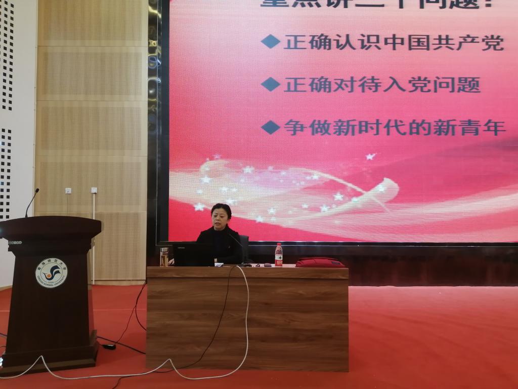 讲座中,秦燕鸣围绕“正确认识中国共产党、正确对待入党问题、争做新时代的新青年”三个方面,详细介绍了党的性质、党的指导思想、党的宗旨和纪律、最高理想及现阶段的任务,重点阐述了端正入党动机的内涵和途径,教育引导广大学生争做新时代的新青年。她结合生动的案例和故事,图文并茂的梳理了党史党情,回顾了改革开放以来我国经济、社会取得的巨大成就,分享了党员模范先进事迹和抗疫故事,让在场的学生感受到了中国共产党领导和中国特色社会主义制度的优越性。