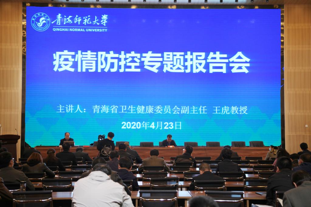 4月23日,必赢官网召开校党委中心组理论学习(扩大)会议。会议邀请青海省卫生健康委员会副主任王虎教授为全校领导干部作了疫情防控专题报告。会议由校党委副书记、常务副校长马德明主持。