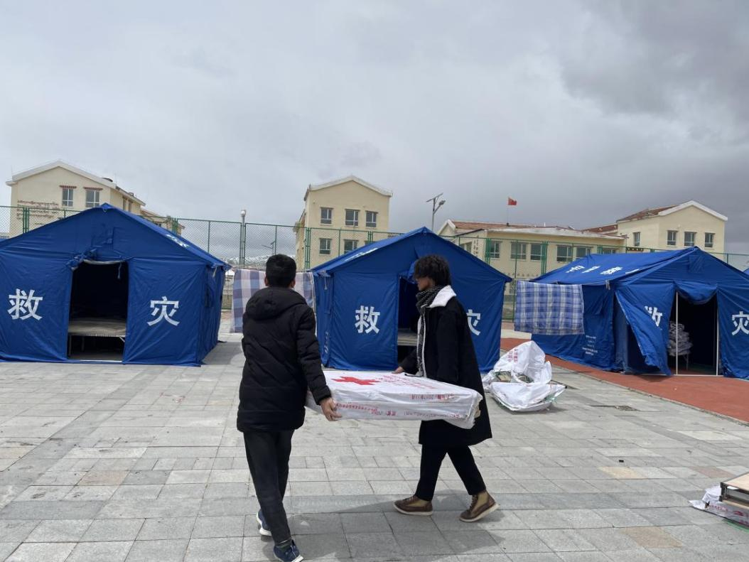 由于教学楼在地震时产生裂缝,需要等专家进行风险评估后,才能决定是否可以继续使用。在这期间,帐篷就成了老师和孩子们的宿舍和教室。雷占林说,“救援物资、吃穿用度、从头到脚真的是一应俱全,可以说是事无巨细,国家对学生们、老师们太好了!省上的、州上的领导都来看我们,还带来了抚慰金,救援物资也一车一车的往这里送。我们生活在这样一个幸福的国家,有这样一个伟大的政党,我觉得真的特别自豪,也特别有底气,我们什么也不怕。”雷占林对未来仍将持续两个多月的帐篷课堂表现出十足的信心。
