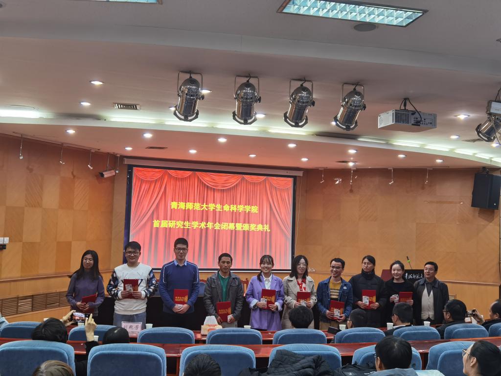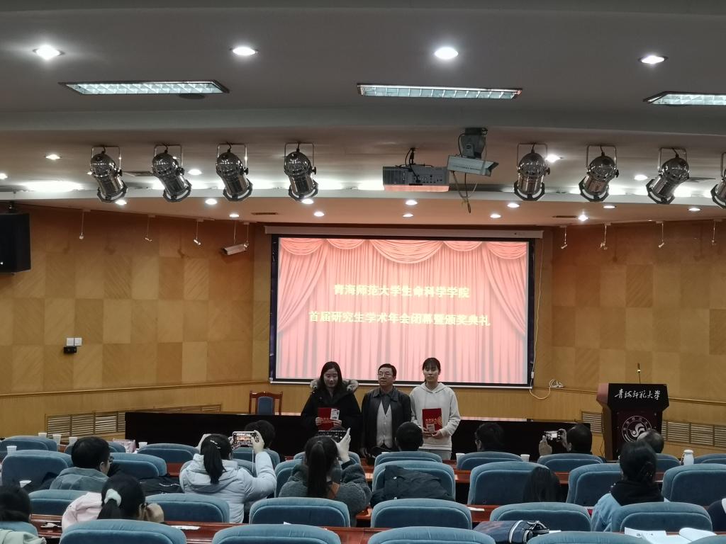 经评委专家现场打分,评选出生命科学学院首届研究生学术年会优秀报告奖,其中一等奖3项,二等奖9项,三等奖15项。生命科学学院副院长谢惠春致闭幕词,并宣读了获奖研究生名单;副书记范建平为27名获奖研究生颁发获奖证书和奖品。