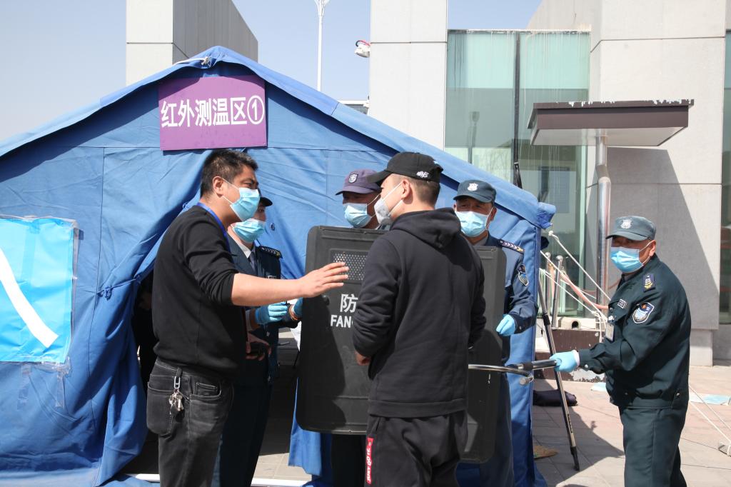 在南校门,进行了开学报到流程进入校园相关场景演练。学生工作处、保卫处和明德物业职工扮演学生、工作人员等角色,逐项演练了学生返校报到中的排队引导、身份核验、信息登记、消毒测温4个环节的工作流程,并着重演练了学生出现没有携带返校通知单及两次测温高于37.3℃等特殊情况的应急处置,全过程各小组目标明确、流程清晰、操作规范、配合紧密,圆满完成了报到全流程演练。