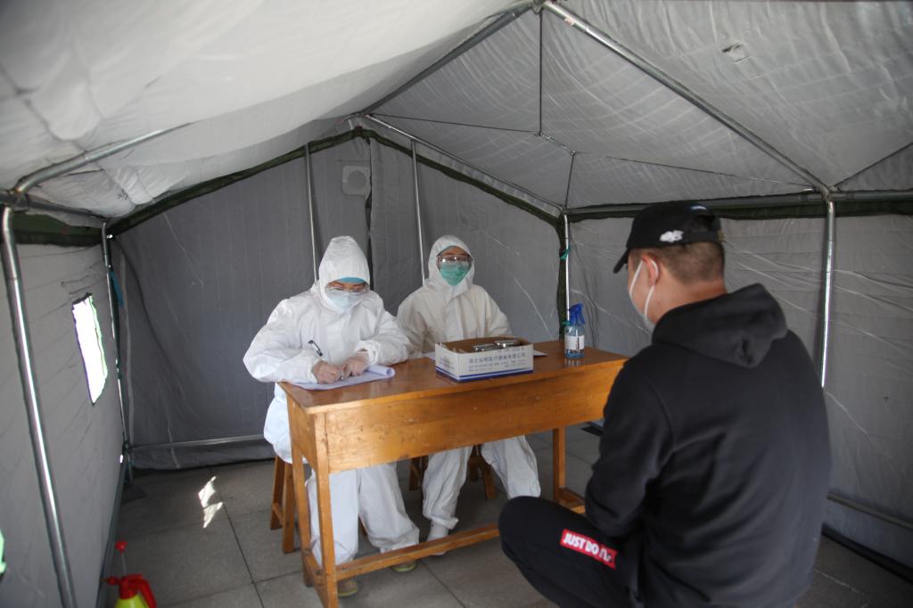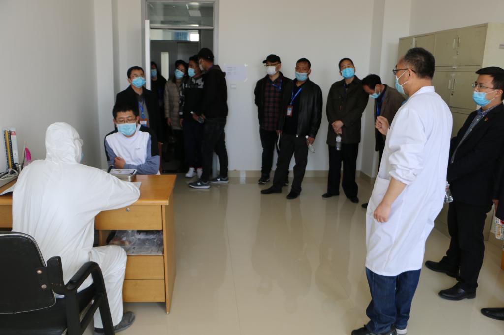 在校医院,进行了在宿舍、教室、食堂等场所两次测温体温异常(温度≥37.3℃)者被送至发热门诊后的场景处置演练。