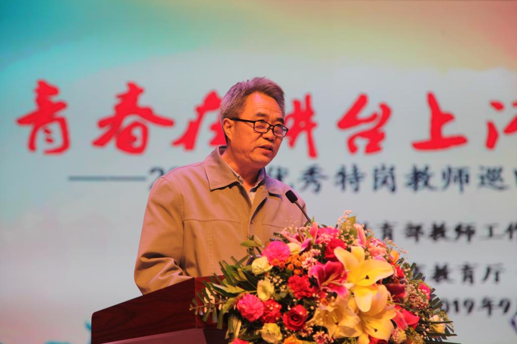 教育部教师工作司巡视员赵建军指出,刚才五位优秀的特岗教师分享了他们的故事,听下来让我们每一个人深受感动和鼓舞。他们用自己的青春奉献乡村教育事业,在工作中展现出不畏艰苦、乐教从教的职业理想和敬业精神,影响并改变着千千万万农村孩子的命运。“特岗计划”实施14年来,招聘规模逐步扩大,至今共有75.4万名特岗教师,分赴全国的中西部地区1000多个县,为3.7万所农村学校注入新鲜的血液和青春的活力。希望广大青年学子们不辜负党的期望、人民期待、民族重托,以优秀特岗教师为榜样,积极响应国家号召,到基层去、到乡村学校第一线去,扎根基层、服务乡亲、奉献自我,用青春和热血、用知识和担当续写“特岗教师”的辉煌,为推动教育事业新的发展做出应有的贡献,在实现中国梦的伟大实践中书写别样的精彩人生。