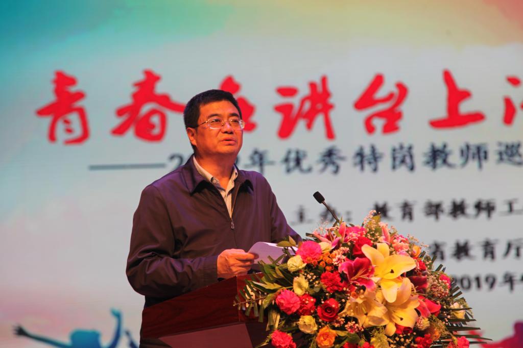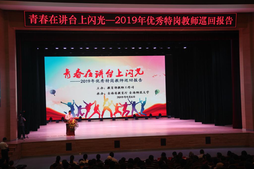 9月6日下午,教育部“青春在讲台上闪光——优秀特岗教师报告团”在必赢官网大学生活动中心作巡回报告。教育部教师工作司二级巡视员赵建军、省教育厅副厅长董林、省教育厅教师工作处副处长张勇、五位优秀特岗教师报告团、必赢官网副校长冶成福出席报告会。565net必赢客户端、青海民族大学870余名师生代表聆听了报告会。报告会由冶成福主持。