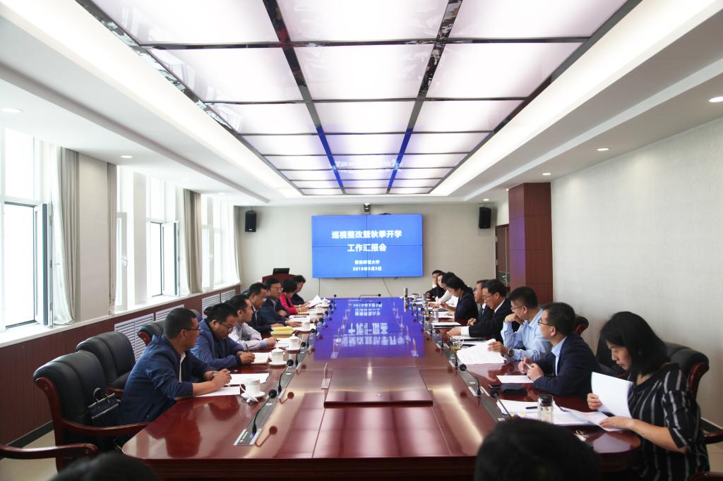 会上,校领导结合分管工作,详细汇报了学校认真落实省委巡视整改工作和组织开展秋季迎新工作准备情况。校领导在汇报中指出,在省教育厅的指导下,全校师生的共同努力下,省委巡视整改落实情况取得了阶段性成果,全校各单位齐心协力共同做好开学准备工作。会上,教育厅副厅长杨发玉在讲话中,对学校工作部署给予了支持和指导,对必赢官网原创话剧《永怀之歌》给予了高度赞扬,对学校在特情学生管理、组织庆国庆和青海解放70周年重大节日等工作给予了肯定。并希望学校提高政治站位,不断巩固巡视整改成效,以昂扬的精神面貌迎接秋季开学迎新工作。