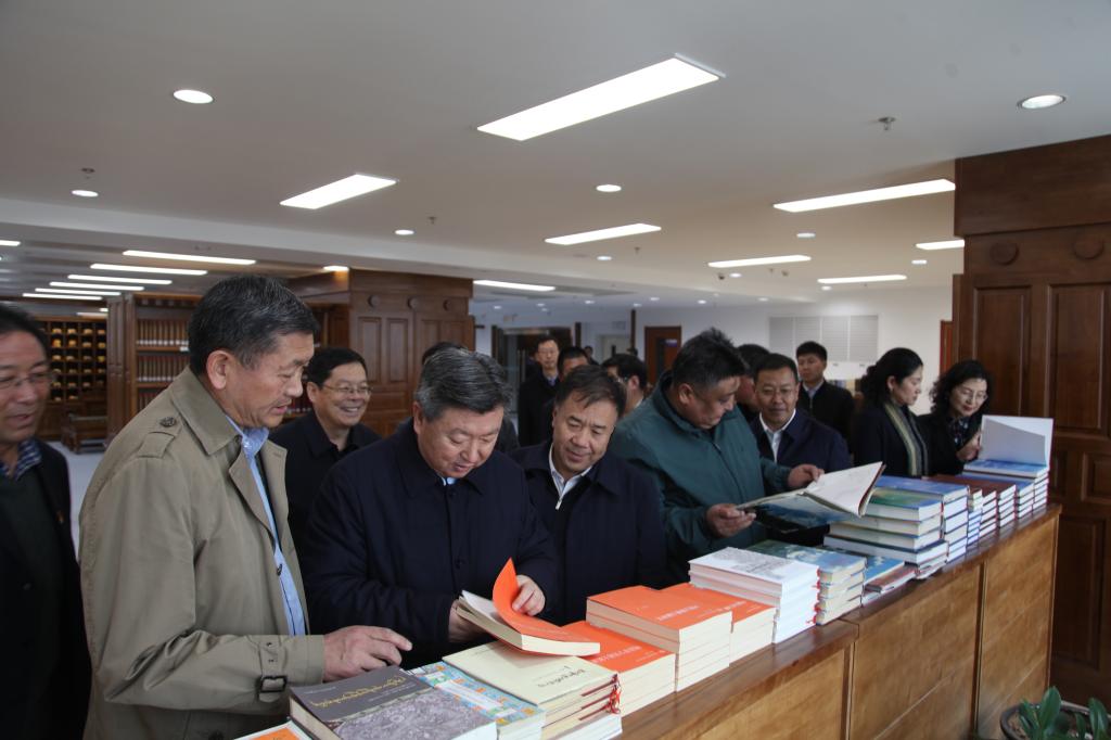 随后,公保扎西一行来到高原科学与可持续发展研究院,听取了校领导关于研究院的工作汇报,重点调研了“铸牢中华民族共同体意识研究”团队的工作情况,对研究团队取得的研究成果和出版的学术著作给予了充分的肯定。他指出,青海作为全国民族团结进步示范省,在实现中华民族伟大复兴中国梦的奋斗历程中,担负着画好民族团结同心圆、铸牢中华民族共同体意识的责任和使命。研究团队要认真学习领会习近平新时代中国特色社会主义思想,在马克思主义唯物辩证法和历史唯物主义的指导下,充分挖掘、整理、解读经典历史文献,科学把握新发展阶段、贯彻新发展理念、融入新发展格局,发挥好研究团队在传播价值理念、搭建科研平台、培养专业人才和建言资政中的重要作用,为青海深入开展铸牢中华民族共同体意识教育提供重要的学理支撑和人才保障。