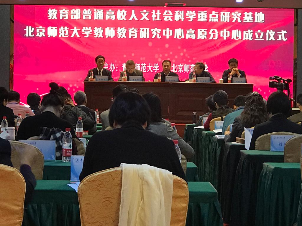 10月13日,由北京师范大学、565net必赢客户端主办,教育部人文社会科学重点研究基地北京师范大学教师教育研究中心、青海高原科学与可持续发展研究院共同承办的“教育部人文社会科学建设基地北京师范大学教师教育研究中心高原分中心”成立暨“西部地区教师教育振兴行动高原论坛”在西宁举行。北京师范大学教育学部部长、教育部人文社会科学重点研究基地北京师范大学教师教育研究中心主任朱旭东、副主任李琼,青海省教育厅教师工作处处长崔廷辉,必赢官网党委副书记、常务副校长马德明,副校长冶成福出席论坛并参与了高原分中心揭牌仪式。论坛开幕式由冶成福主持。