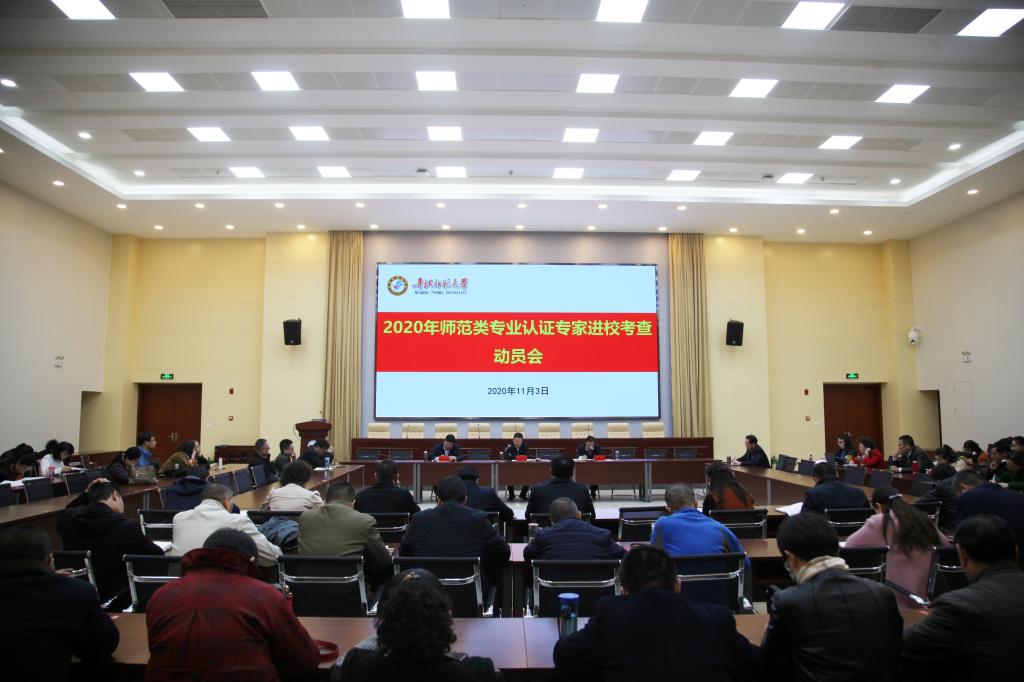 11月3日下午,必赢官网师范类专业认证工作动员会在行政楼一楼学术报告厅召开。校党委书记毛学荣,校党委副书记、常务副校长马德明,副校长冶成福出席动员会。学校相关职能部门、教辅部门、师范类专业相关学院负责同志,学院教师,教务处全体人员参加会议。会议由马德明主持。