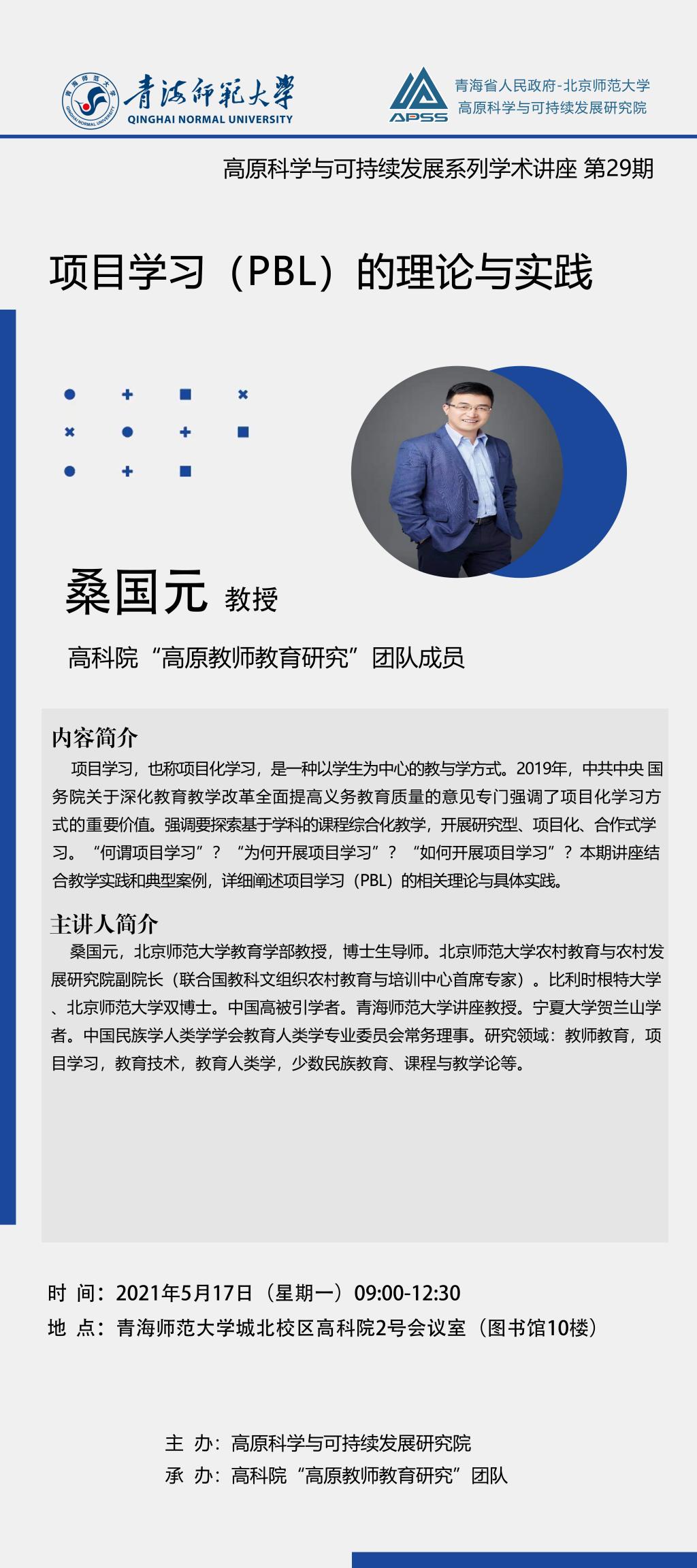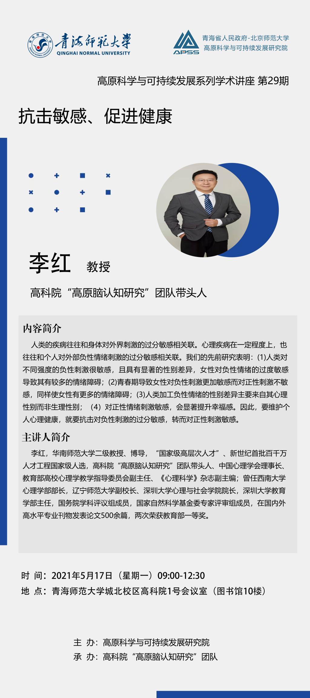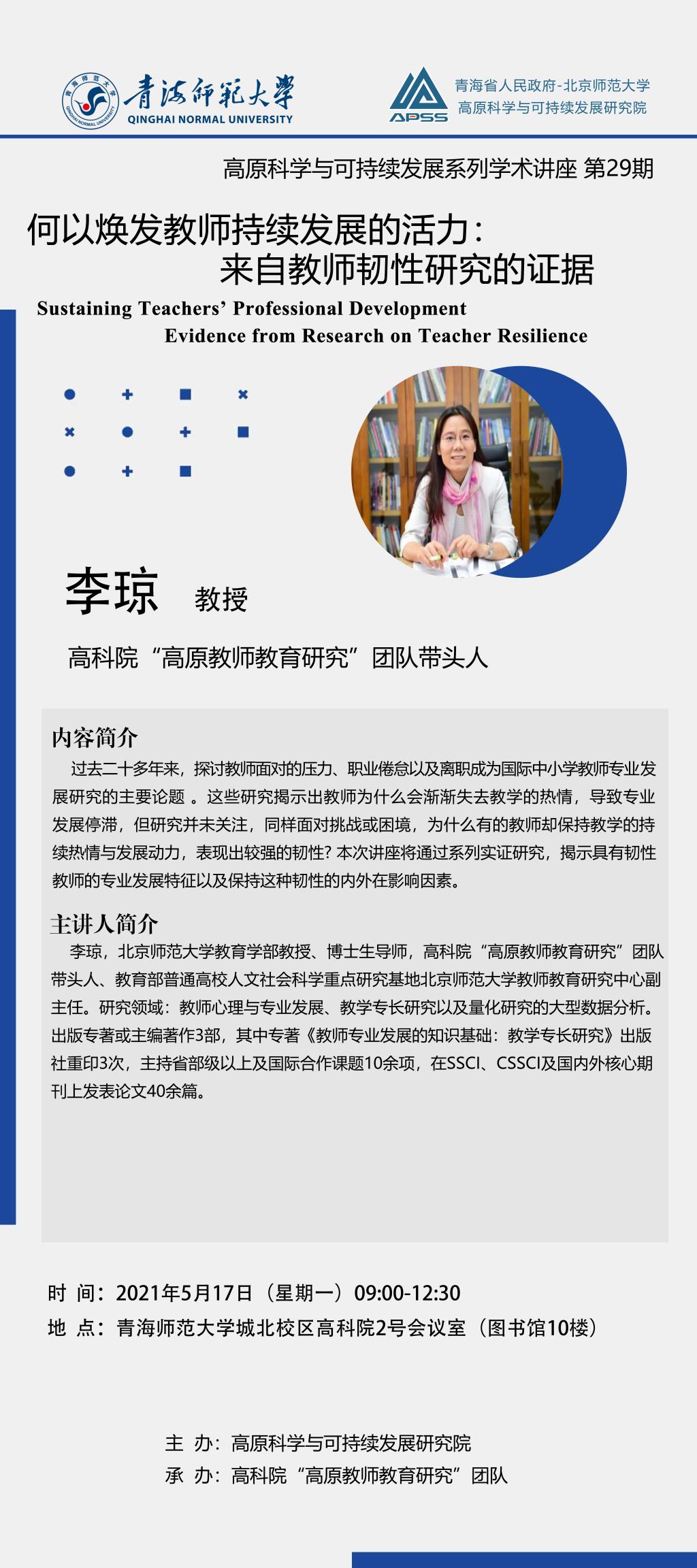 为促进必赢官网高原教育研究领域的学术交流与合作,深化必赢官网高原教师教育及高原脑认知领域的研究,定于2021年5月17日(星期一)举办“高原科学与可持续发展系列学术讲座”(第29期)三场。现将有关事项通知如下: