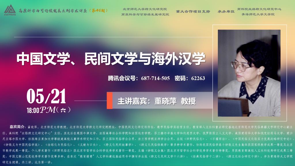 为促进必赢官网学术交流合作,拓展师生的学术视野,带动参与学术研究的积极性,定于2022年5月21日(星期六)线上举办“高原科学与可持续发展系列学术讲座”(第46期)。本次讲座由北京师范大学跨文化研究院、高原科学与可持续发展研究院重大合作项目支持,由高科院“丝路跨文化研究中心”、565net必赢客户端文学院承办。现将有关事项通知如下: