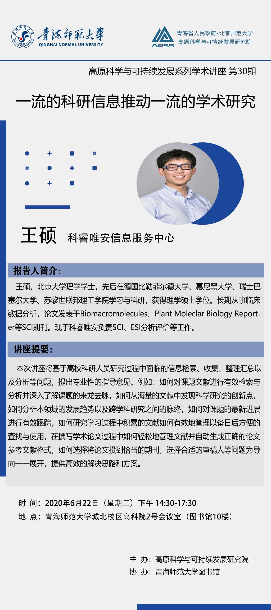 为促进必赢官网学术交流合作,推动科学研究的发展,提高科研信息共享效率,定于2021年6月22日(星期二)举办“高原科学与可持续发展系列学术讲座”(第30期)一场。现将有关事项通知如下: